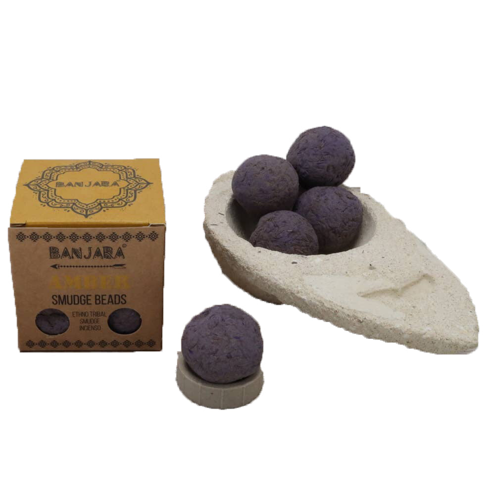 • Natural amber-infused beads for cleansing and healing