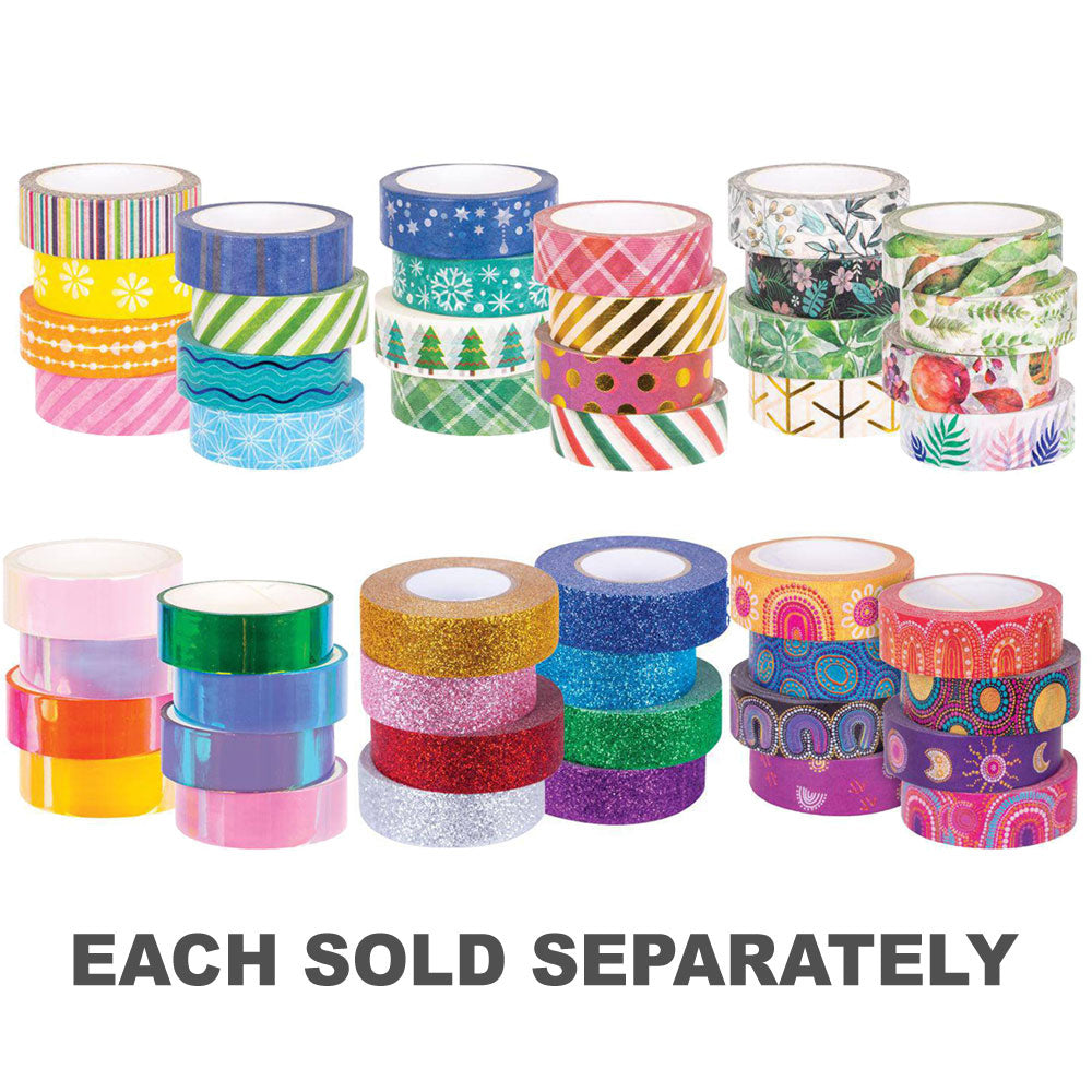 Washi Tape Assorted add a beautiful touch to card making, stationary, gift giving, ornaments, decorative and general crafts. Quick, easy, clean, eye catching and effective!
