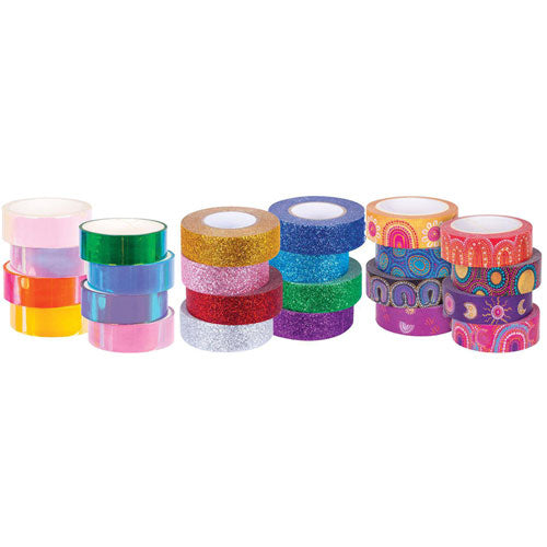 Have fun decorating, making and personalising your creations with this gorgeous Washi Tape Assorted 8's colours patterned selection! Easy, clean, eye catching and effective, you'll just love how quickly you can transform something into a creative work!