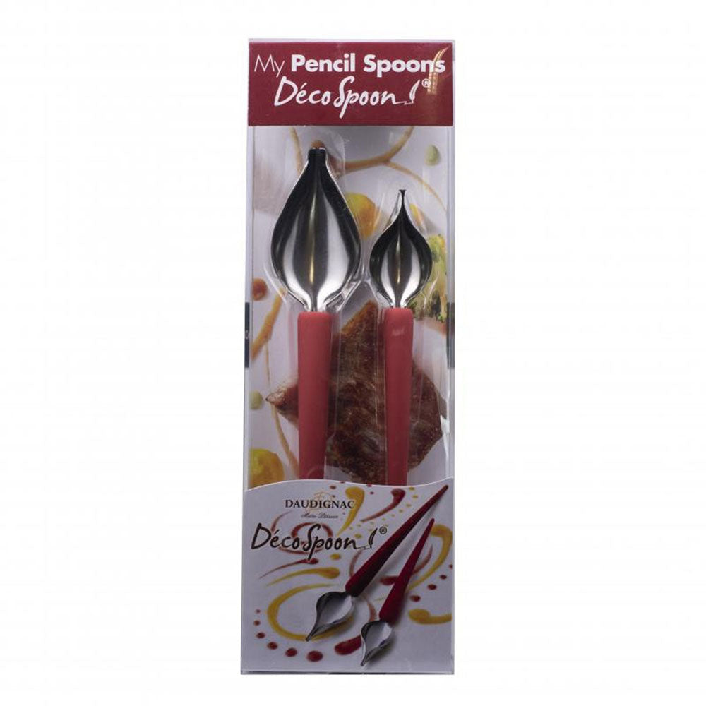 Designed by a French pastry chef, the DecoSpoon becomes the essential tool of professionals and of amateurs of theatrical cooking. With a simple gesture, you can also become the artist of your dishes, and sign your presentations like a great chef. The DecoSpoon is to the plate what the brush is to the canvas. Ideal for use with Gravy, Sauces, Balsamic Vinegar, Thin Potato Mash, Dessert Sauces, Custard, Fruit Coulis, an emulsion of fish or vegetables and much more! Includes: 1 small 19cm DecoSpoon, 1 large 23cm DecoSpoon