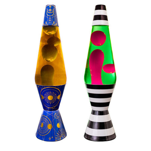 - Features purple and blue gradient glass body filled with lava that swirls and ripples when lit