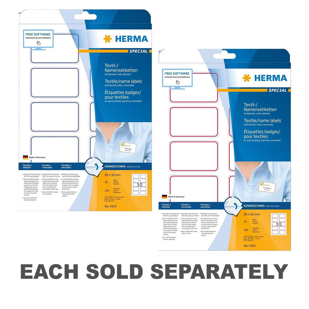 Herma Coloured Textile/Name Labels A4 20pc (80x50mm)