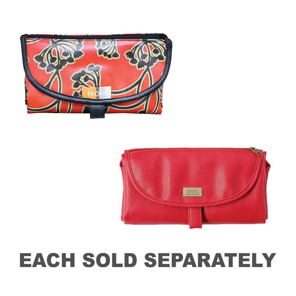 The Isoki Change Mat Clutch is a must have baby item. Folding up into a conveniently sized clutch is a large, easy wipe padded change mat with mesh storage pockets perfect for carrying nappies, baby wipes, cream and a change of clothes.