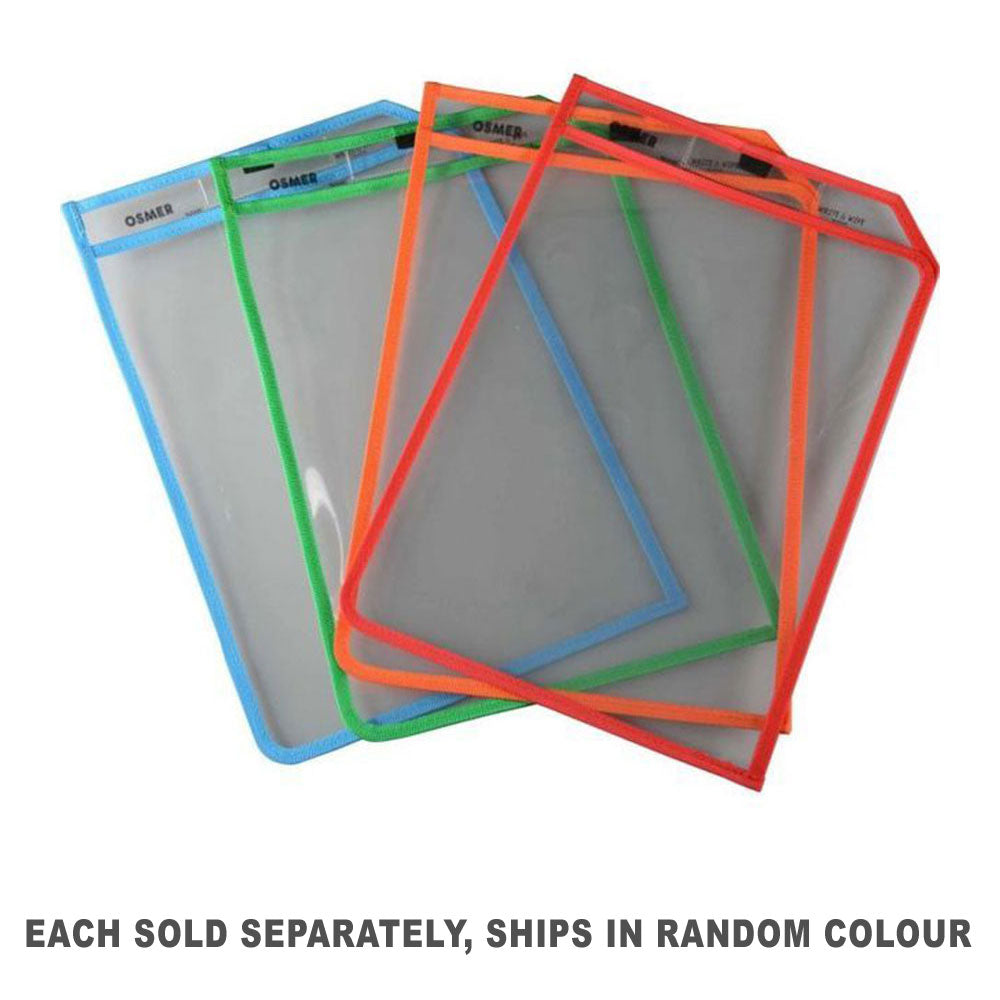 Write on/Wipe off A3 Erasable sleeve – with black whiteboard marker. Side opening for ease of inserting and removing work sheets. Photocopied sheets can be used many times save on costs and less paper consumed